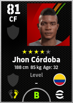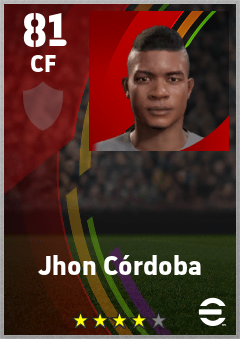 . Jhon Córdoba is a Center Forward footballer from Colombia who plays for Free in eFootball 2026.