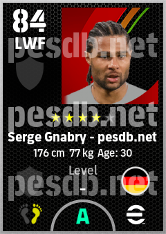 . Serge Gnabry is a Left Wing Forward footballer from Germany who plays for Free in eFootball 2026.