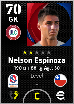 . Nelson Espinoza is a Goalkeeper footballer from Chile who plays for La Calera R in eFootball 2026.