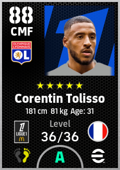 .Corentin Tolisso is a Center Midfielder footballer from France who plays for Olympique Lyonnais in eFootball 2026.
