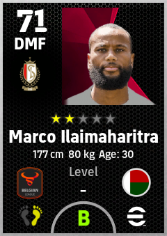 . Marco Ilaimaharitra is a Defensive Midfielder footballer from Madagascar who plays for Liège Rw in eFootball 2026.