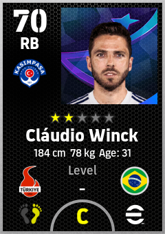 . Cláudio Winck is a Right Back footballer from Brazil who plays for Kasımpaşa Sk in eFootball 2026.