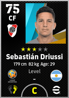. Sebastián Driussi is a Center Forward footballer from Argentina who plays for Ca River Plate in eFootball 2026.