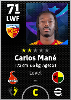 . Carlos Mané is a Left Wing Forward footballer from Guinea-Bissau who plays for Mondihome Kayserispor in eFootball 2026.