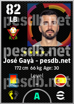 . José Gayà is a Left Back footballer from Spain who plays for Valencia Bn in eFootball 2026.