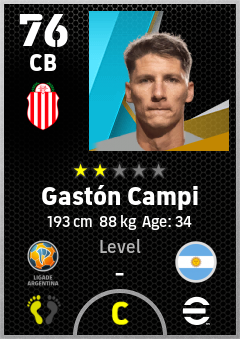 . Gastón Campi is a Center Back footballer from Argentina who plays for Barracas Rb in eFootball 2026.