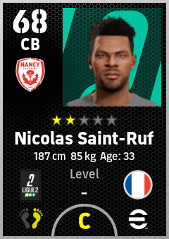 . Nicolas Saint-Ruf is a Center Back footballer from France who plays for As Nancy-Lorraine in eFootball 2026.
