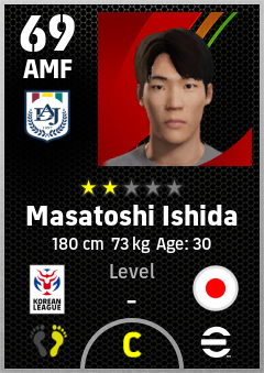 . Masatoshi Ishida is a Attacking Midfielder footballer from Japan who plays for Daejeon Rgw in eFootball 2026.