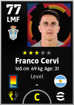 . Franco Cervi is a Left Midfielder footballer from Argentina who plays for Vigo Ab in eFootball 2026.