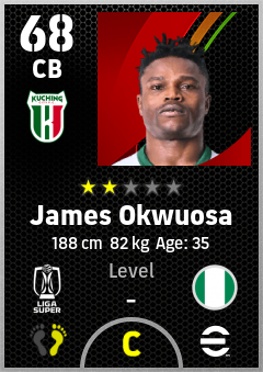 . James Okwuosa is a Center Back footballer from Nigeria who plays for Kuching City Fc in eFootball 2026.