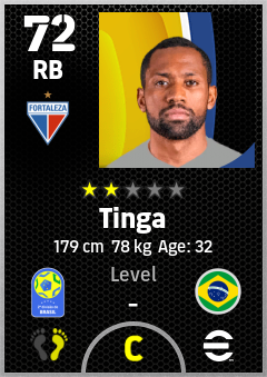 . Tinga is a Right Back footballer from Brazil who plays for Fortaleza Avb in eFootball 2026.