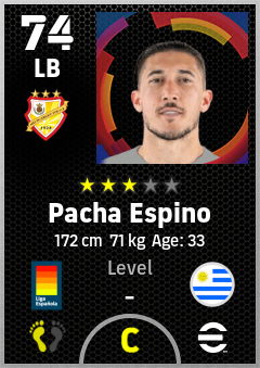 . Pacha Espino is a Left Back footballer from Uruguay who plays for Vallecas Br in eFootball 2026.