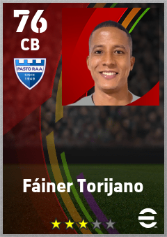 . Fáiner Torijano is a Center Back footballer from Colombia who plays for Pasto Raa in eFootball 2026.