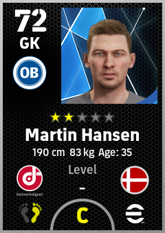 . Martin Hansen is a Goalkeeper footballer from Denmark who plays for Odense Hb in eFootball 2026.