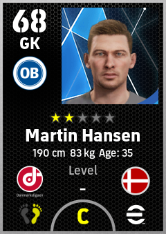 . Martin Hansen is a Goalkeeper footballer from Denmark who plays for Odense Hb in eFootball 2026.