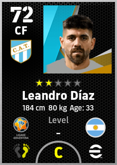 . Leandro Díaz is a Center Forward footballer from Argentina who plays for Tucumán Ab in eFootball 2026.