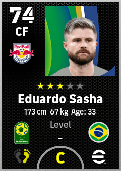 . Eduardo Sasha is a Center Forward footballer from Brazil who plays for Red Bull Bragantino in eFootball 2026.