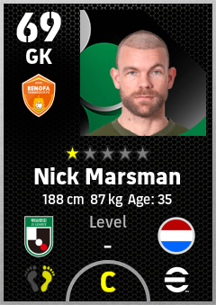 . Nick Marsman is a Goalkeeper footballer from Netherlands who plays for Renofa Yamaguchi Fc in eFootball 2026.