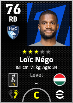 . Loïc Négo is a Right Back footballer from Hungary who plays for Havre Ac in eFootball 2026.
