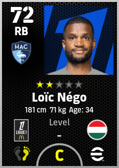 . Loïc Négo is a Right Back footballer from Hungary who plays for Havre Ac in eFootball 2026.