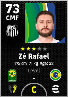 . Zé Rafael is a Center Midfielder footballer from Brazil who plays for Santos Fc in eFootball 2026.