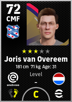 . Joris Van Overeem is a Center Midfielder footballer from Netherlands who plays for Sc Heerenveen in eFootball 2026.