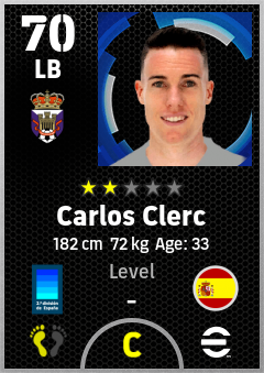 . Carlos Clerc is a Left Back footballer from Spain who plays for Valladolid Mb in eFootball 2026.