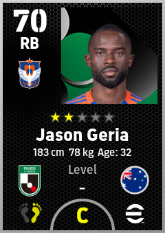 . Jason Geria is a Right Back footballer from Australia who plays for Albirex Niigata in eFootball 2026.