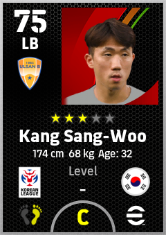 . Kang Sang-Woo is a Left Back footballer from Korea Republic who plays for Ulsan B in eFootball 2026.