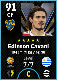 . Edinson Cavani is a Center Forward footballer from Uruguay who plays for Ca Boca Juniors in eFootball 2026.