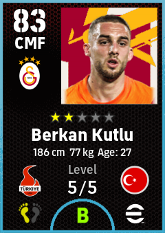 . Berkan Kutlu is a Center Midfielder footballer from Türkiye who plays for Galatasaray Sk in eFootball 2026.