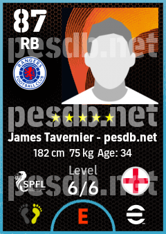James Tavernier is a Right Back footballer from England who plays for Rangers Fc in eFootball 2026.