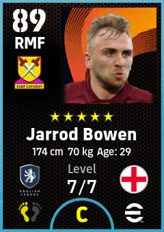 . Jarrod Bowen is a Right Midfielder footballer from England who plays for West Ham Rb in eFootball 2026.