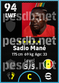 . Sadio Mané is a Left Wing Forward footballer from Senegal who plays for Free in eFootball 2026.