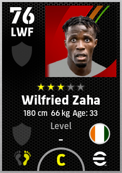 . Wilfried Zaha is a Left Wing Forward footballer from Côte D'ivoire who plays for Free in eFootball 2026.