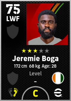 . Jeremie Boga is a Left Wing Forward footballer from Côte D'ivoire who plays for Free in eFootball 2026.