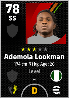 . Ademola Lookman is a Second Striker footballer from Nigeria who plays for Free in eFootball 2026.