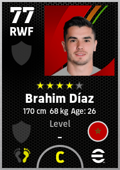 . Brahim Díaz is a Right Wing Forward footballer from Morocco who plays for Free in eFootball 2026.