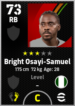. Bright Osayi-Samuel is a Right Back footballer from Nigeria who plays for Free in eFootball 2026.
