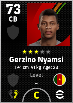. Gerzino Nyamsi is a Center Back footballer from Cameroon who plays for Free in eFootball 2026.