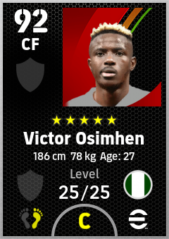 . Victor Osimhen is a Center Forward footballer from Nigeria who plays for Free in eFootball 2026.