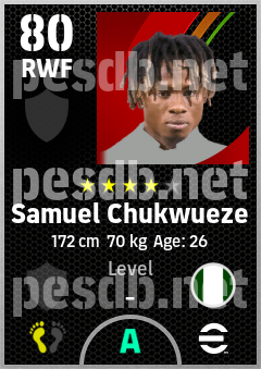 . Samuel Chukwueze is a Right Wing Forward footballer from Nigeria who plays for Free in eFootball 2026.
