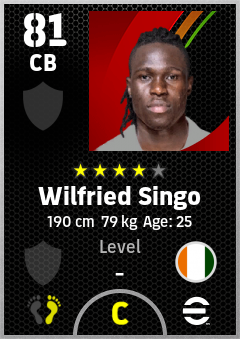 . Wilfried Singo is a Center Back footballer from Côte D'ivoire who plays for Free in eFootball 2026.