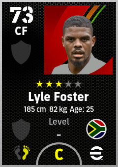 . Lyle Foster is a Center Forward footballer from South Africa who plays for Free in eFootball 2026.