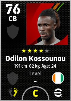 . Odilon Kossounou is a Center Back footballer from Côte D'ivoire who plays for Free in eFootball 2026.