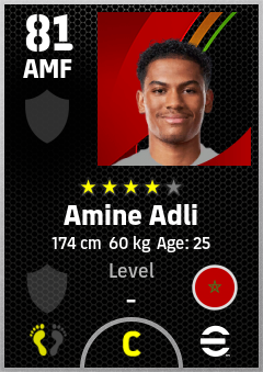 . Amine Adli is a Attacking Midfielder footballer from Morocco who plays for Free in eFootball 2026.