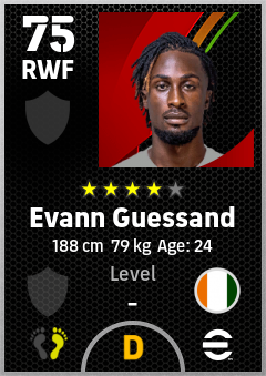 . Evann Guessand is a Right Wing Forward footballer from Côte D'ivoire who plays for Free in eFootball 2026.