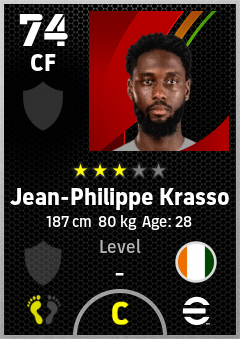 . Jean-Philippe Krasso is a Center Forward footballer from Côte D'ivoire who plays for Free in eFootball 2026.