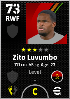 . Zito Luvumbo is a Right Wing Forward footballer from Angola who plays for Free in eFootball 2026.
