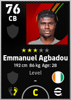 . Emmanuel Agbadou is a Center Back footballer from Côte D'ivoire who plays for Free in eFootball 2026.